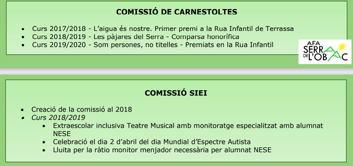 Benvolguts Pares i Mares, Us informem de l’apertura del procés electoral, segons manen els estatuts de la nostra associació. Adjuntem calendari de terminis resumit. CALENDARI ELECTORAL…